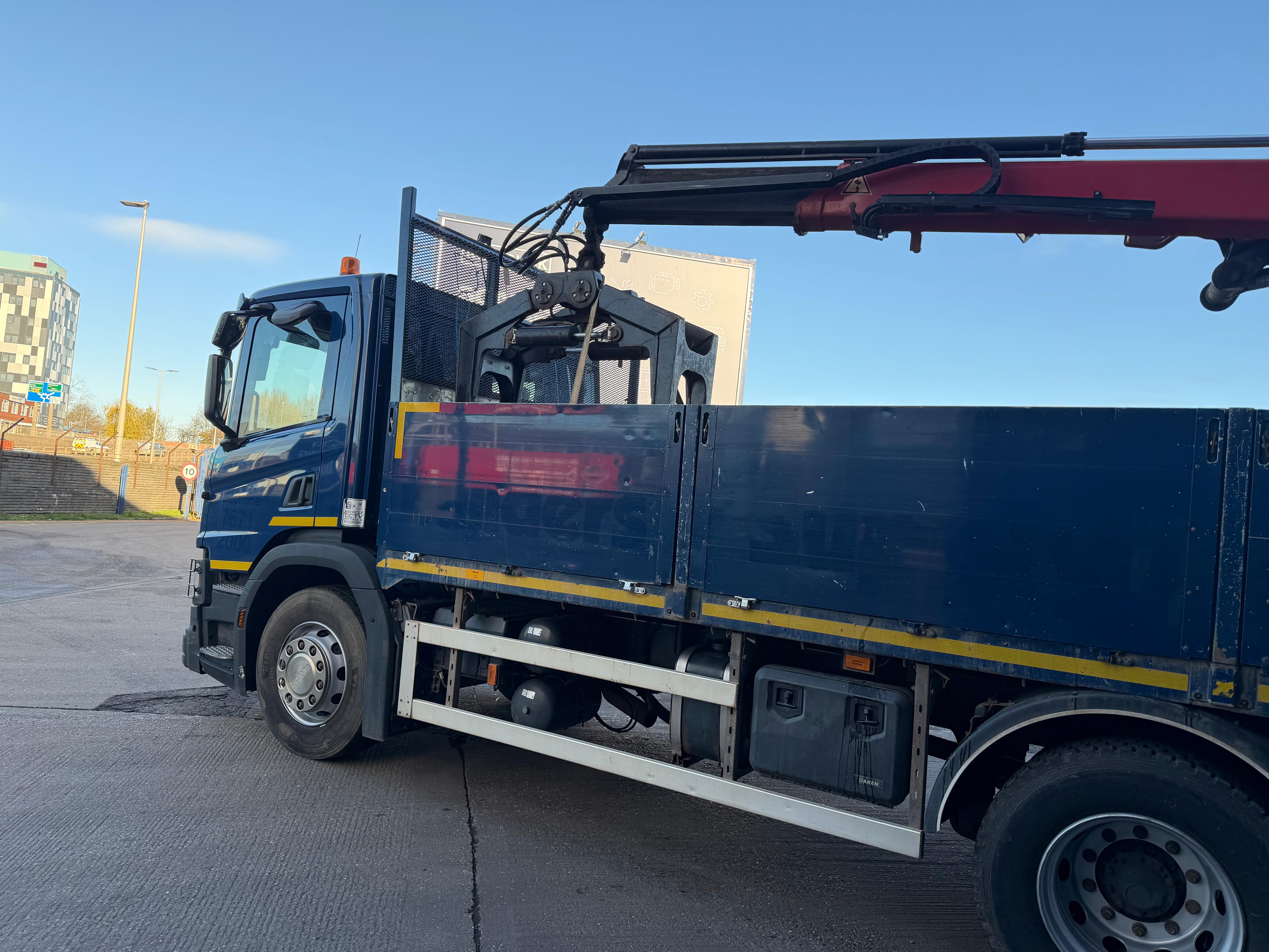 2 Ped, 300ltr, 4150mm W/B H7, Day Cab, Basic dash, Triple Drop Side , HMF 1430 Rear Crane c/w Rotator.